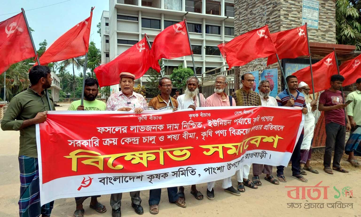 কৃষিপণ্য বিক্রয়ে ধলতা নেওয়া বন্ধসহ ৮ দফা দাবিতে কৃষক সমিতির বিক্ষোভ সমাবেশ