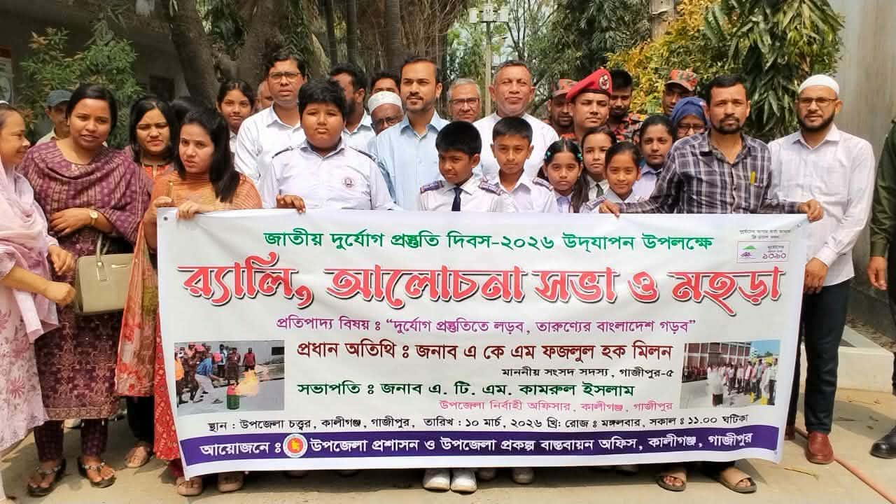 কালীগঞ্জে জাতীয় দুর্যোগ প্রস্তুতি দিবসের র্যালি ও আলোচনা সভা অনুষ্ঠিত
