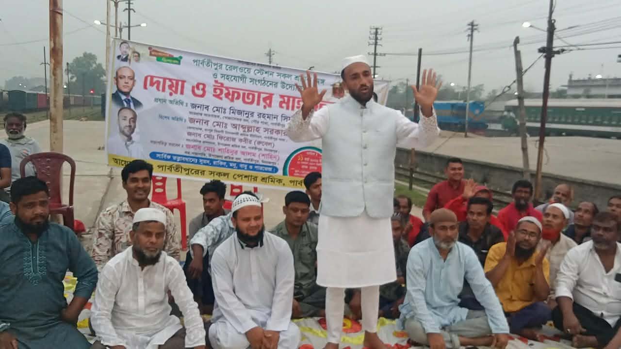 দিনাজপুরের পার্বতীপুর রেলওয়ে স্টেশনের সকল শ্রমিক অঙ্গ ও সহযোগী সংগঠনের উদ্যোগে যথাযোগ্য মর্যাদায় দোয়া ও ইফতার মাহফিল অনুষ্ঠিত হয়েছে। আজ বুধবার (১১ মার্চ) রেলওয়ে স্টেশনের ৫ নং প্ল্যাটফর্ম  চত্বরে আয়োজিত এই অনুষ্ঠানে প্রধান অতিথি হিসেবে উপস্থিত ছিলেন, পার্বতীপুর পৌর স্বেচ্ছাসেবক দলের ভারপ্রাপ্ত আহ্বায়ক মোঃ মিজানুর রহমান সিয়াম। ​ইফতার পূর্ব সংক্ষিপ্ত আলোচনায় প্রধান অতিথি মোঃ মিজানুর … বিস্তারিত পড়ুন